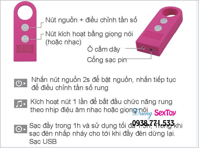- Tính năng: rung 7 tần số khác nhau, cảm biến âm thanh