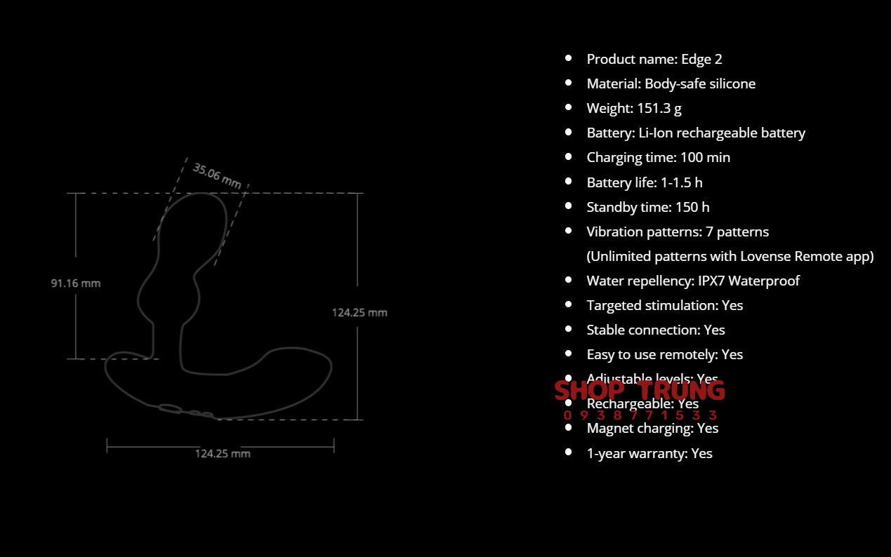 Shop Trungdochoi tự hào mang đến cho bạn sản phẩm Lovense Edge 2 chính hãng cùng dịch vụ khách hàng tốt nhất. Hãy để chúng tôi đồng hành cùng bạn trên hành trình khám phá những giới hạn mới của bản thân.