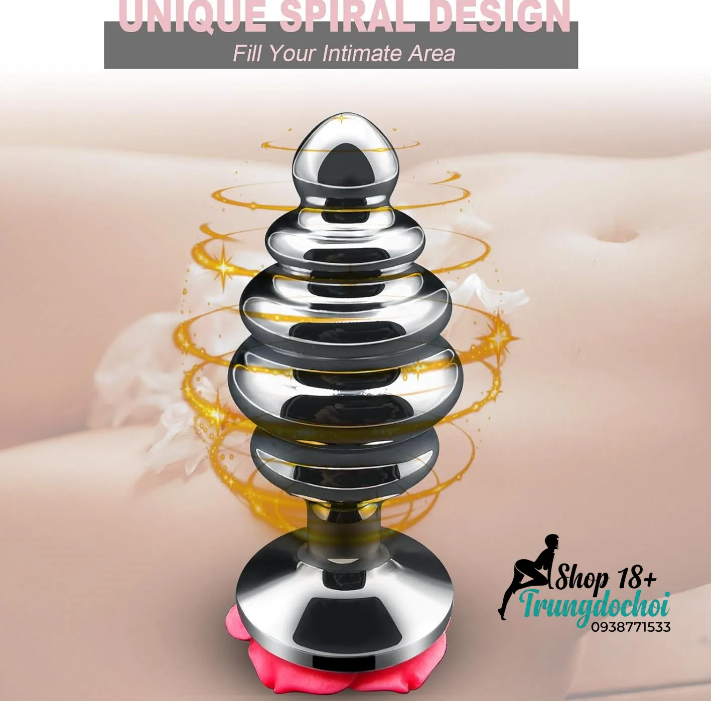 Đây là loại anal plug bằng kim loại inox với thân hình xoắn ốc đặc biệt mỗi vòng xoắn tạo ra cảm giác kích thích liên tục khi đưa vào và rút ra. Thiết kế này khác hoàn toàn so với plug trơn thông thường: các rãnh xoắn tạo áp lực đều lên thành trực tràng và hỗ trợ định vị đúng vào tuyến tiền liệt (điểm P).