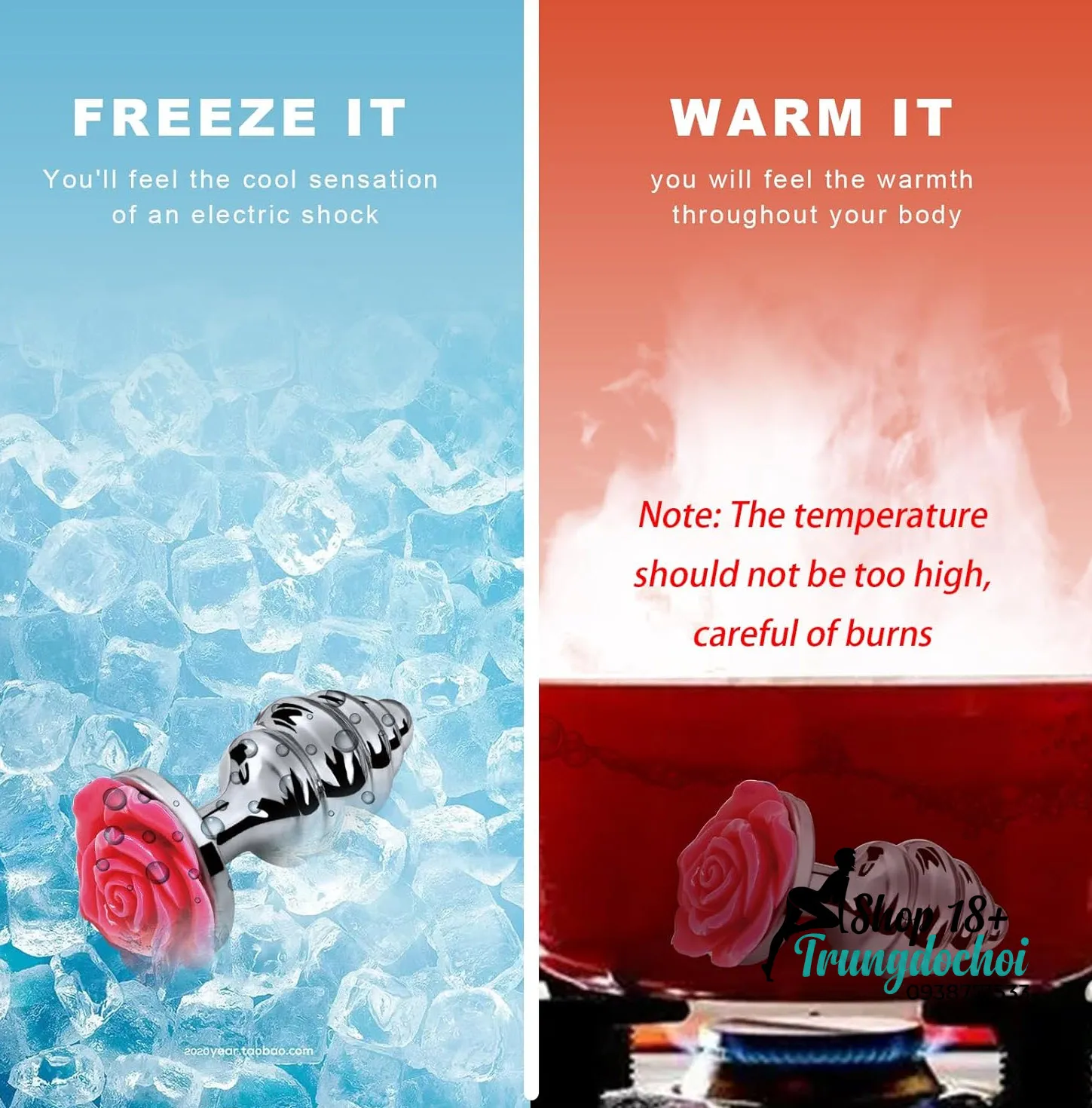 - Temperature Play — Ngâm nước ấm 5 phút trước dùng cho cảm giác sưởi ấm; ngâm nước lạnh cho cảm giác mát lạnh kích thích — hiệu ứng không có trên toy silicon