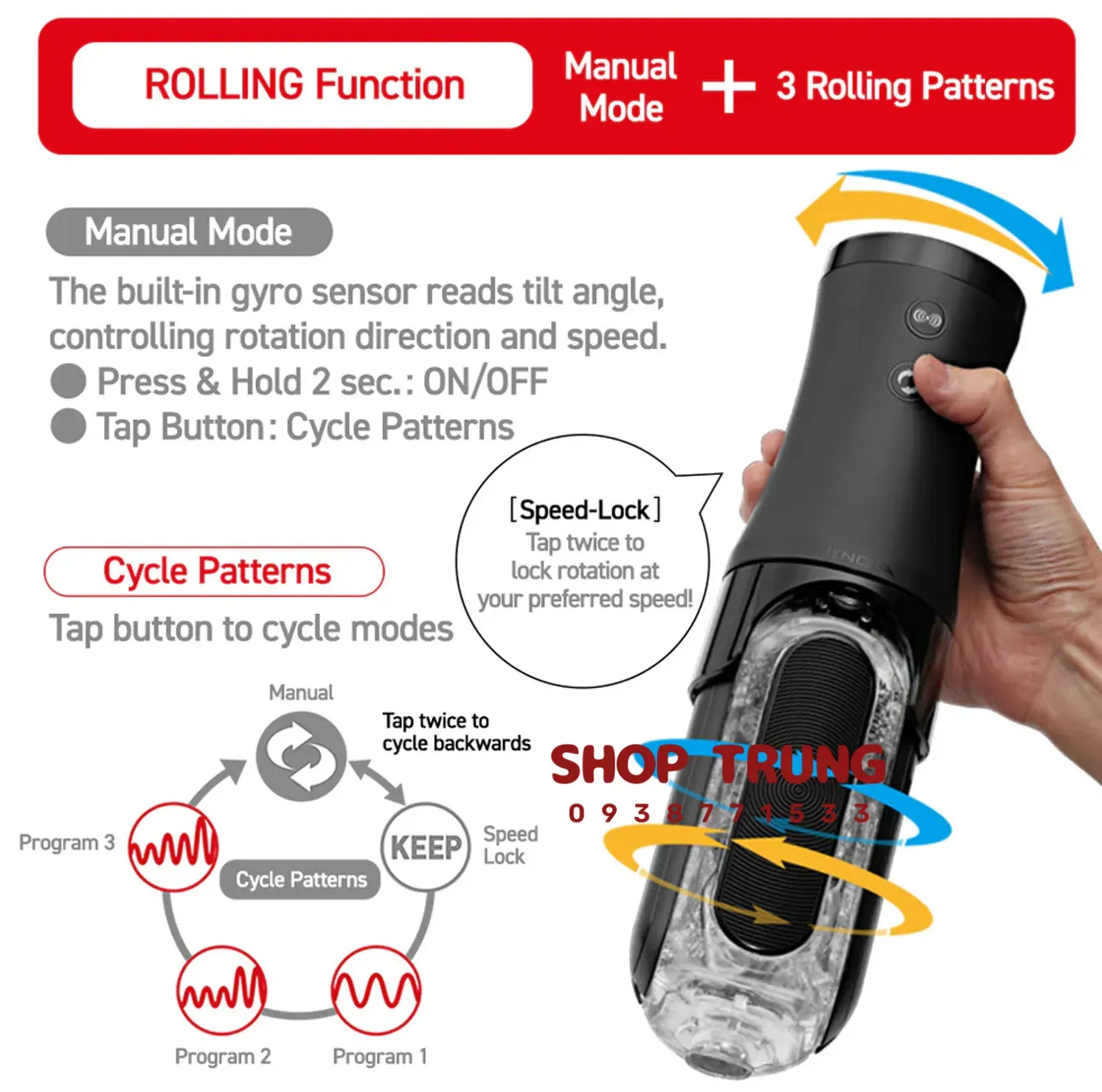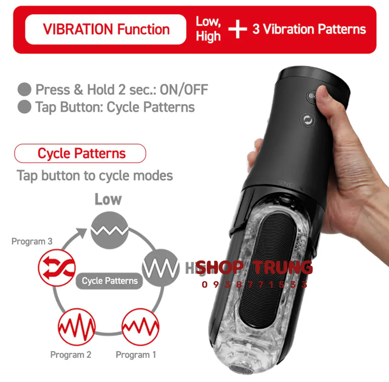 Đây là bằng sáng chế độc quyền của Tenga hai động cơ rung được tích hợp trực tiếp vào lớp vật liệu TPE mềm mại, tạo ra chuyển động rung + xoay tròn đồng thời. Cảm giác này hoàn toàn khác biệt với các máy thủ dâm tự động chỉ có chức năng rung đơn thuần.