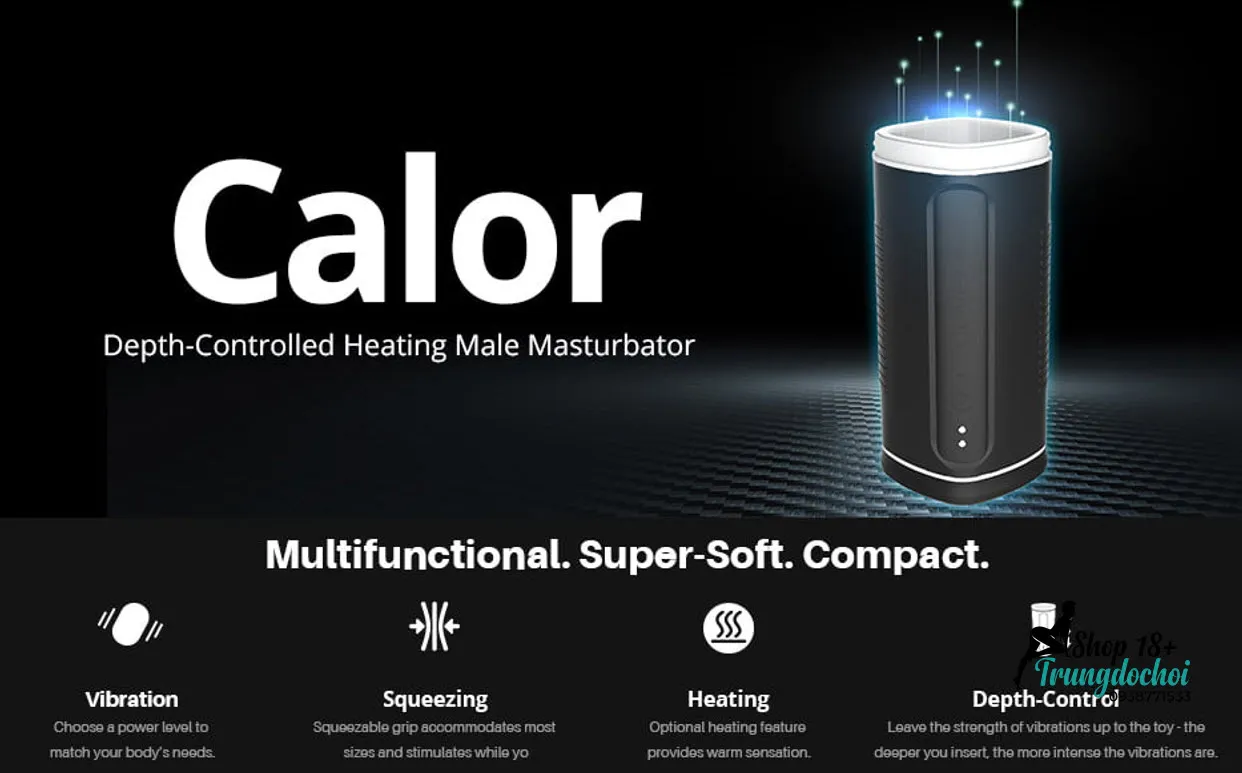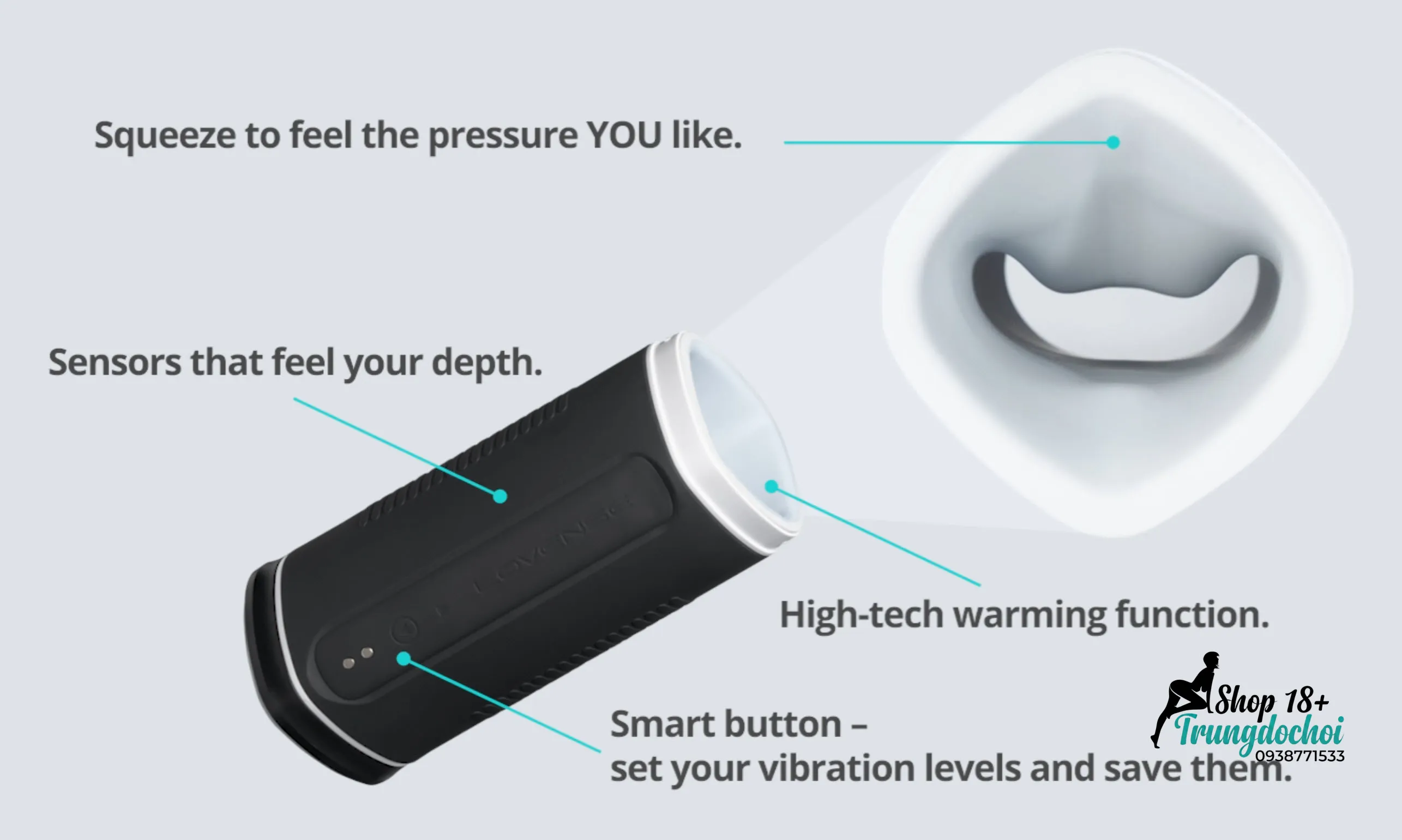 Lovense Calor là máy thủ dâm nam duy nhất có công nghệ Depth-Control (cảm biến độ sâu) - rung mạnh hơn khi thâm nhập sâu hơn. Tích hợp làm ấm 38°C, điều khiển từ xa qua app Lovense Remote. Chống nước IPX7, silicone y tế an toàn. Giá 3.990.000đ, bảo hành 12 tháng. Lý tưởng cho cặp đôi yêu xa.