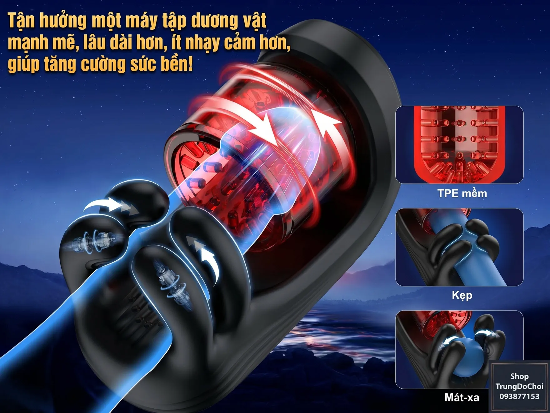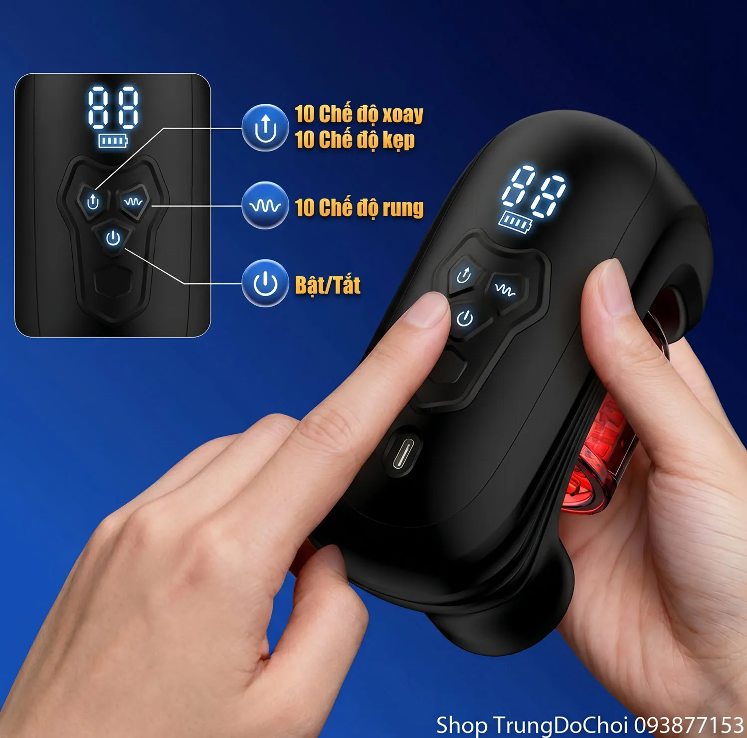 Sở hữu 9 chế độ co bóp (Compressing) và 9 chế độ xoay 360°/rung. 2 chuyển động phức tạp hoạt động cùng lúc tạo ra khoái cảm đa tầng.
