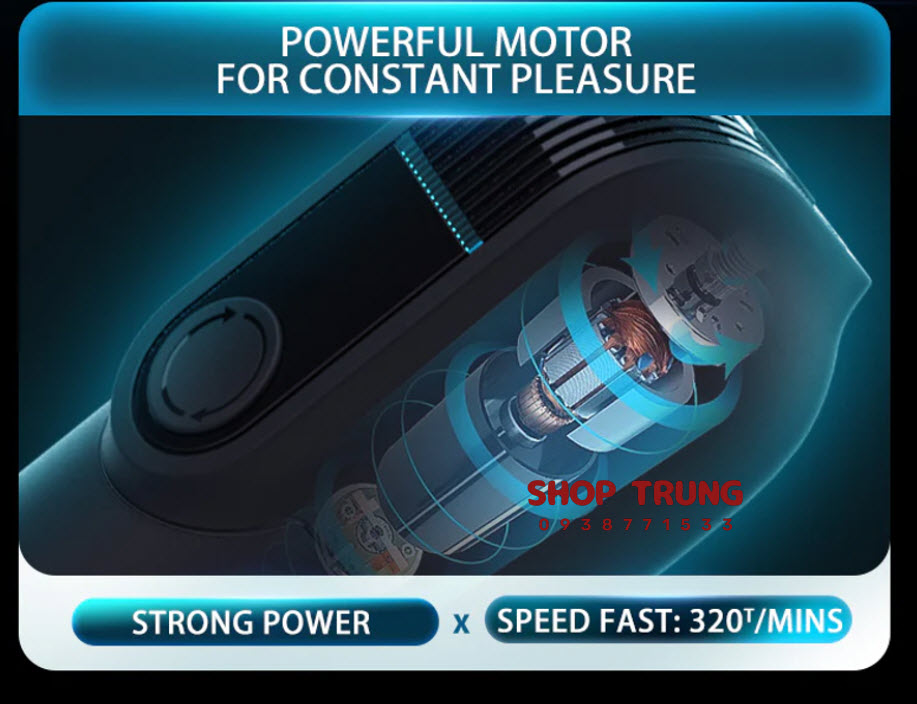 Động Cơ Mạnh Mẽ, Bền Bỉ: Trái tim của máy là động cơ công suất cao, đảm bảo tốc độ co duỗi lên đến 320 lần/phút, mang lại trải nghiệm mãnh liệt và mượt mà, không lo bị kẹt hay gián đoạn giữa chừng.
