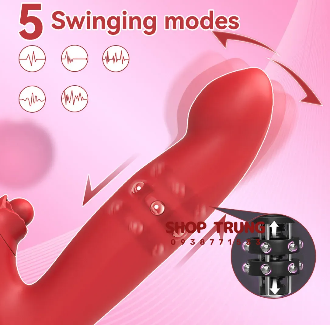 - 5 Chế Độ Lắc/Đẩy Với Bi Lăn: Đây là điểm đột phá! Hệ thống bi lăn di chuyển bên trong thân máy tạo ra chuyển động cơ học massage điểm G một cách sống động và mạnh mẽ chưa từng thấy