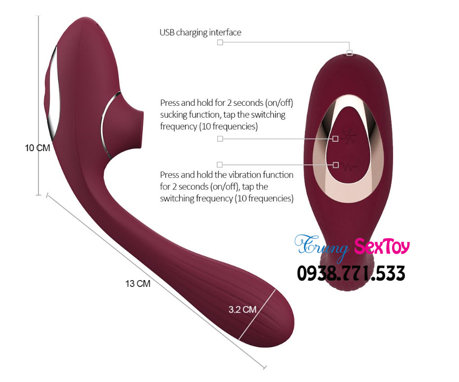 Với lối thiết kế này, khách hàng có thể sử dụng đồ chơi tình dục này để vừa làm máy bú mút bên ngoài, vừa kích thích hột le bên trong. Đặc điểm này thực sự quá hoàn hảo và xứng tiền để sở hữu.