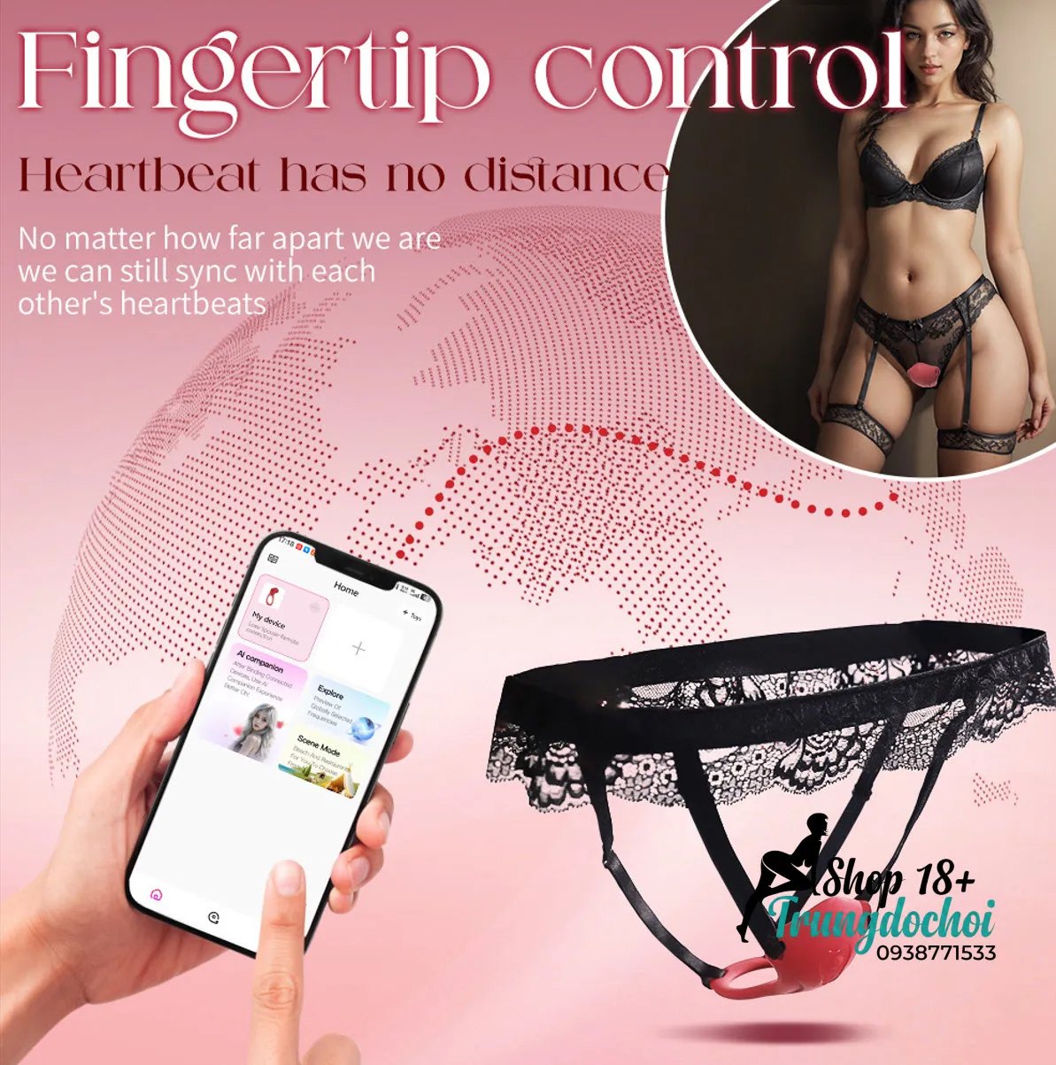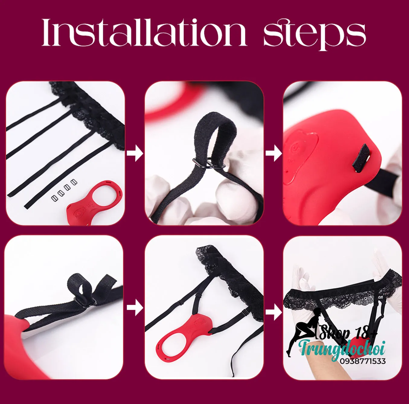 Bước 3 — Đeo và kết nối App: Đeo đai ren tương tự quần lót thông thường, điều chỉnh để đầu rung nằm đúng vị trí âm vật. Mặc quần áo bình thường bên ngoài — hoàn toàn không ai biết bạn đang đeo gì.