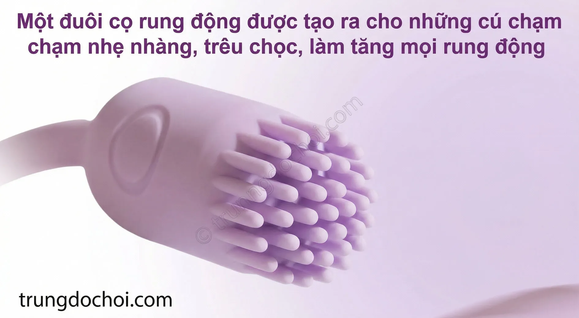 Đuôi chổi cọ fluttering (brush tail): Đây mới là điểm nhấn thiết kế chưa từng có trong phân khúc giá tầm trung. Những sợi silicon siêu mềm rung nhẹ liên tục tạo cảm giác mơn trớn (teasing) tinh tế phù hợp với vùng da nhạy cảm như ngực, đùi trong, hoặc kết hợp với đầu bullet để cùng lúc tác động hai vùng khác nhau.