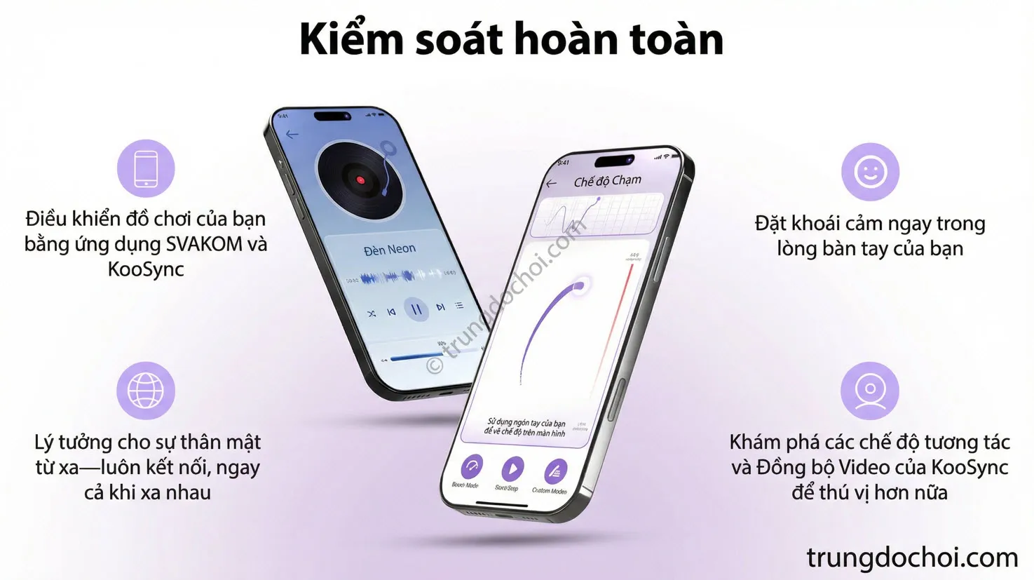 | Điều khiển qua App | ✔ KooSync + Svakom App | ✔ App cơ bản | ✔ Lovense App |