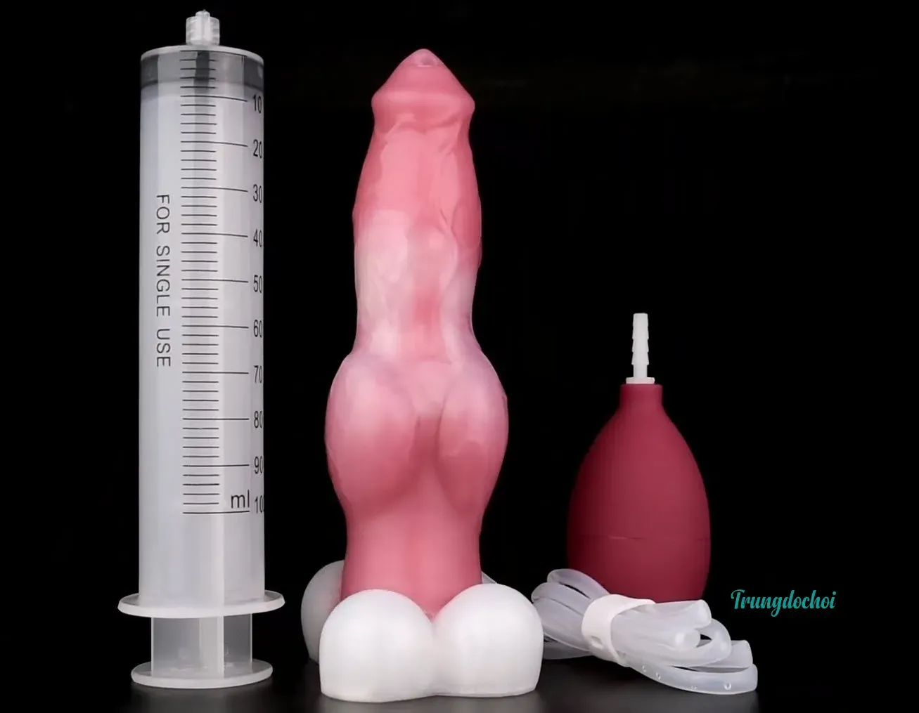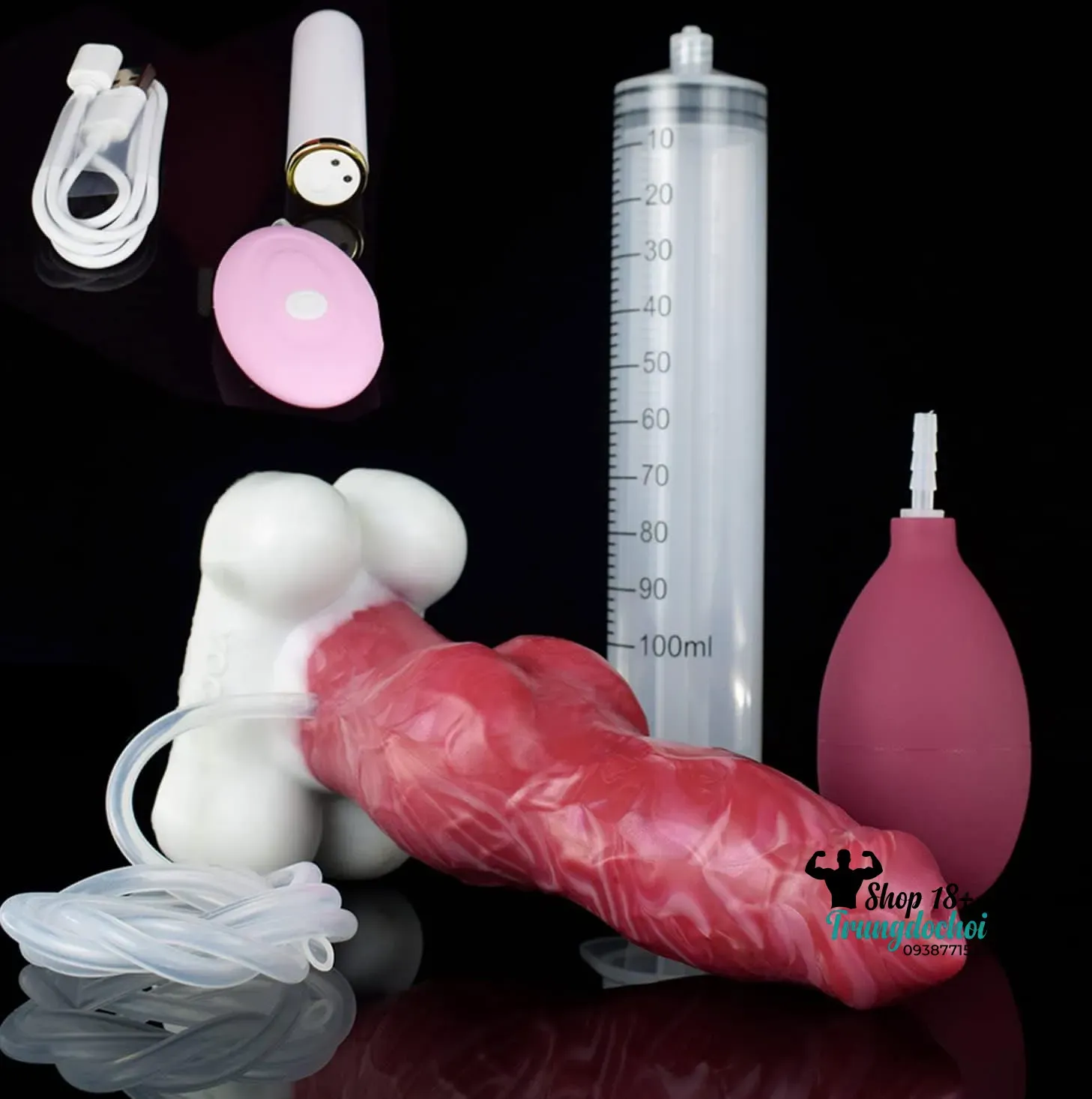 - Mô phỏng xuất tinh (Squirting): Đây là tính năng ăn tiền nhất. Bên trong thân dương vật có một đường ống dẫn ngầm kết nối với ống tiêm dung tích lớn 100ml (đi kèm). Bạn có thể bơm nước ấm hoặc chất bôi trơn loãng vào, khi cao trào chỉ cần đẩy ống tiêm để tạo ra dòng tinh chất phóng ra từ đầu dương vật, mang lại hiệu ứng thị giác và cảm giác ướt át vô cùng chân thực.