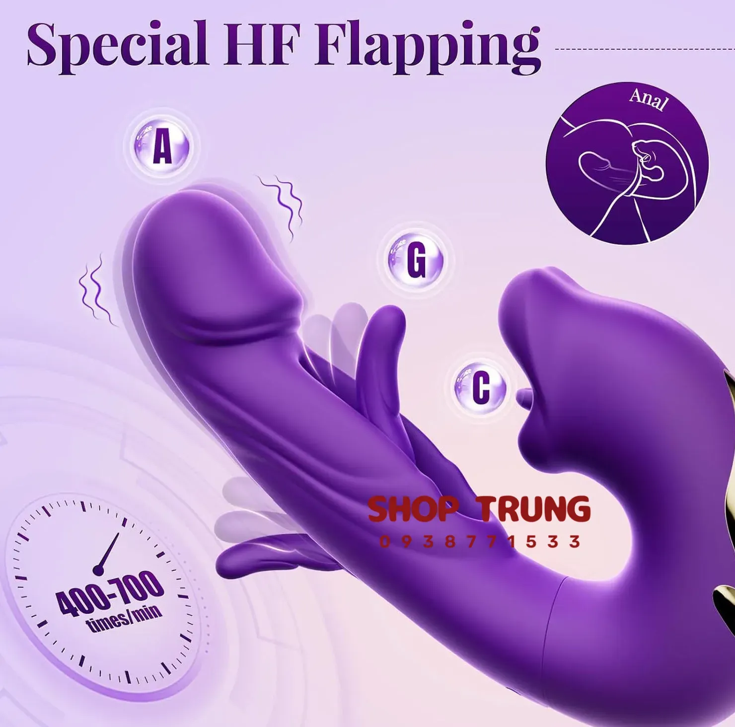 - Cơ Chế Vẫy Flapping Đột Phá: Một nhánh rung phụ với 7 chế độ vẫy liên tục (400-700 lần/phút) tác động lên vùng mu và các điểm nhạy cảm bên ngoài, tạo ra những làn sóng khoái cảm lan tỏa.