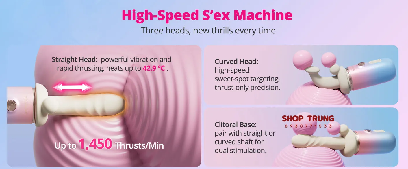 Đế kích thích clitoris: Phụ kiện này có thể gắn vào thân máy để tạo ra kích thích kép. Khi sử dụng đồng thời với chức năng thụt và rung, nó mang lại cảm giác đa tầng đặc biệt mãnh liệt.