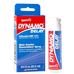 Chai xịt Dynamo Delay là sản phẩm chống xuất tinh sớm hàng đầu từ Hoa Kỳ với nồng độ Lidocaine 13% - cao nhất thị trường. Giúp kéo dài thời gian quan hệ từ 30-60 phút, hiệu quả sau 5-10 phút sử dụng. Được FDA chứng nhận, an toàn cho da nhạy cảm, không gây kích ứng. Giá: 490.000đ - Giao hàng kín đáo 100%, tư vấn miễn phí.