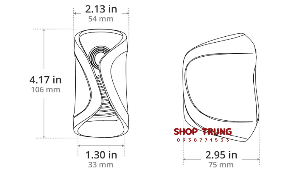 Kích thước: 106 mm (dài) x 75 mm (sâu) x 54 mm (rộng)